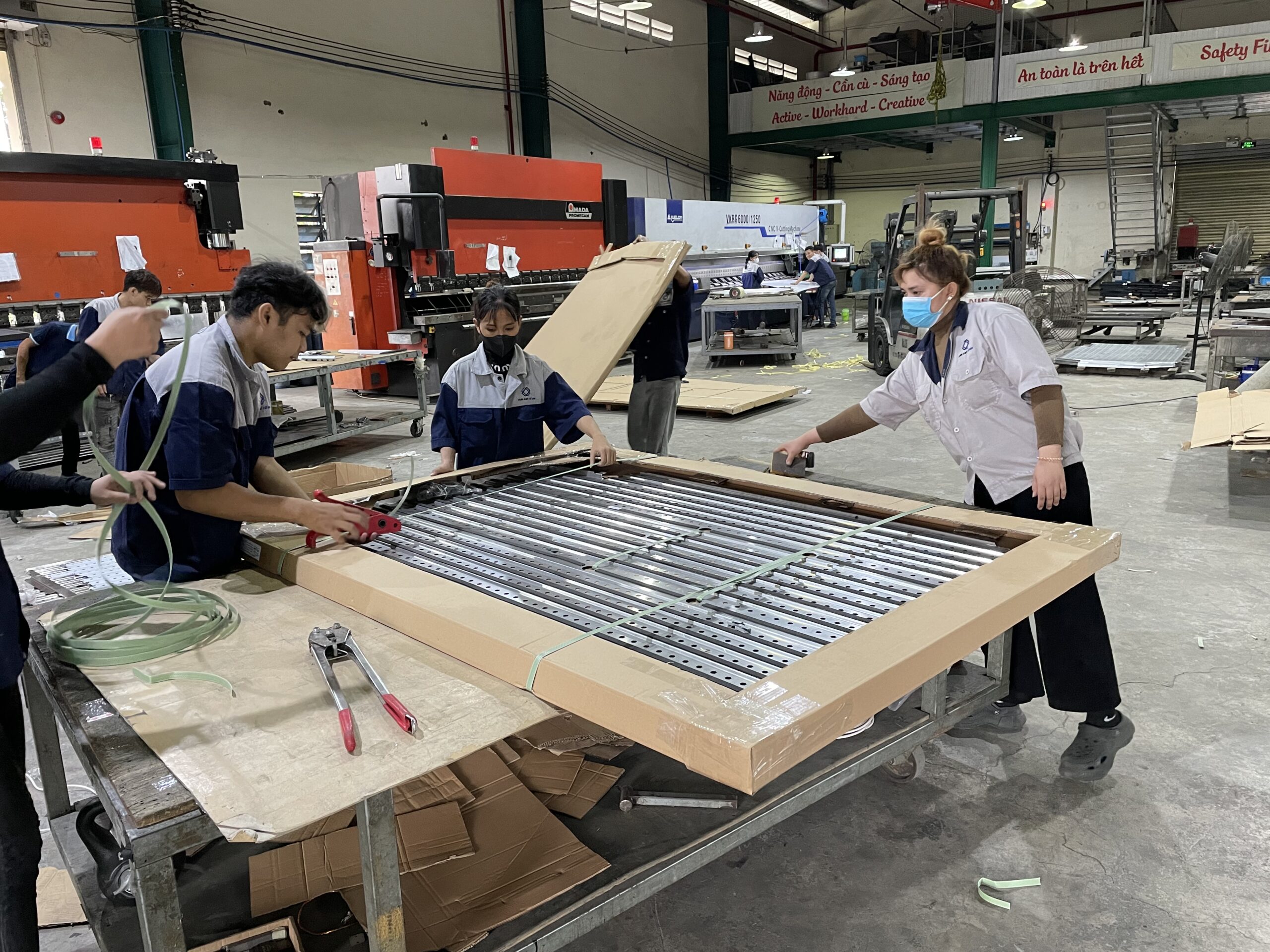 - Nhà xưởng quy mô lớn, trang bị máy cắt CNC, máy laser, máy uốn chấn tấm, hàn MIG – TIG, sơn tĩnh điện hiện đại.